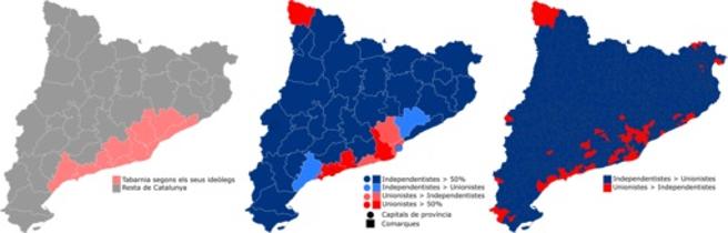 Un troll unionista tuvo la gentileza de facilitarme esta gráfica manipulada que niega esta realidad y se basa en el computo global de los votos de una serie de territorios seleccionados por los partidarios de Tabarnia que carecen de trayectoria histórica y nunca han sido considerados un país, una región, una provincia, una comarca o una localidad y aunque los promotores de la idea de Tabarnia dicen ser unionistas y partidarios de la unidad de España, no tiene ningún reconocimiento oficial por parte del estado español como ente territorial diferenciado.